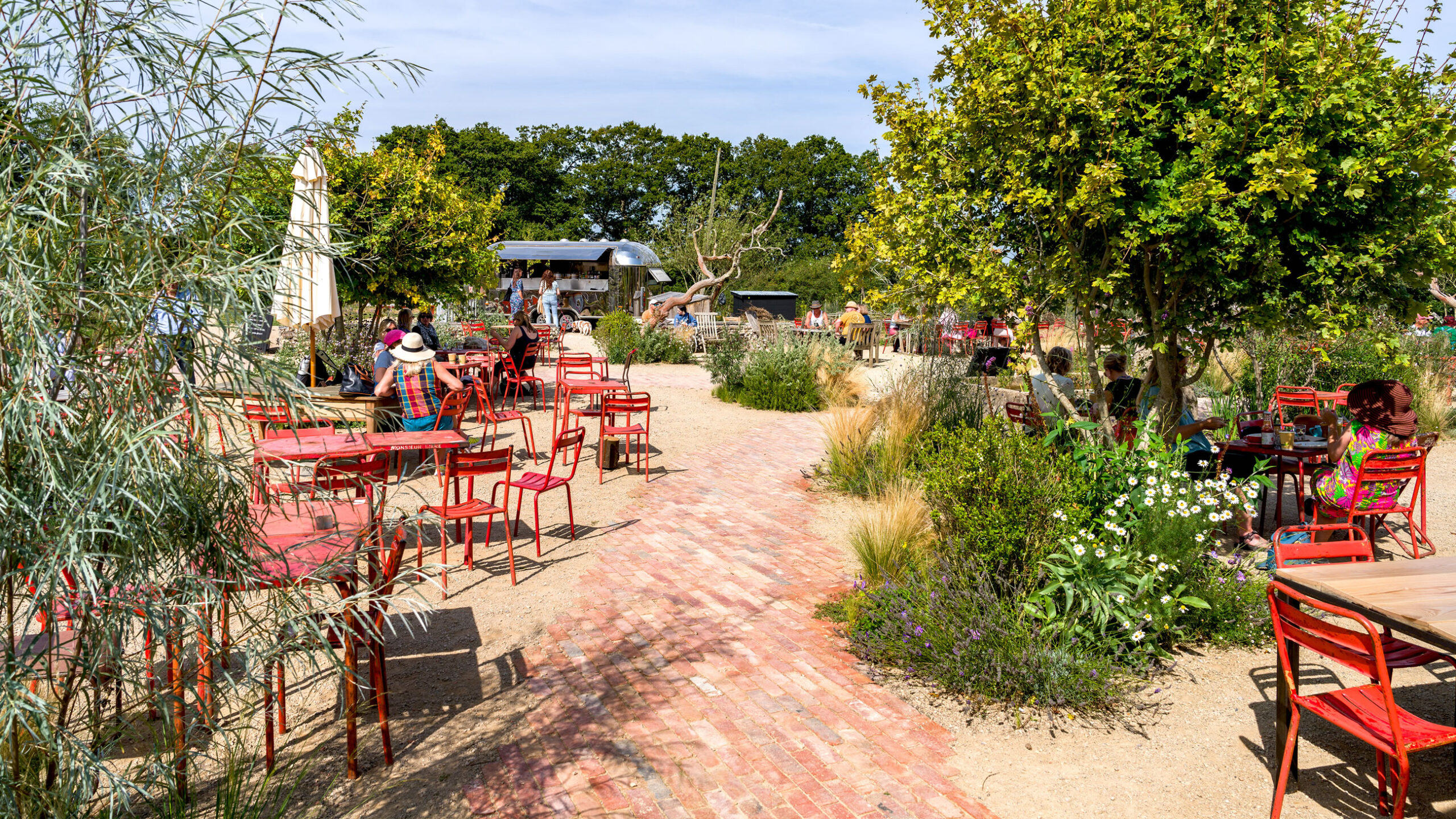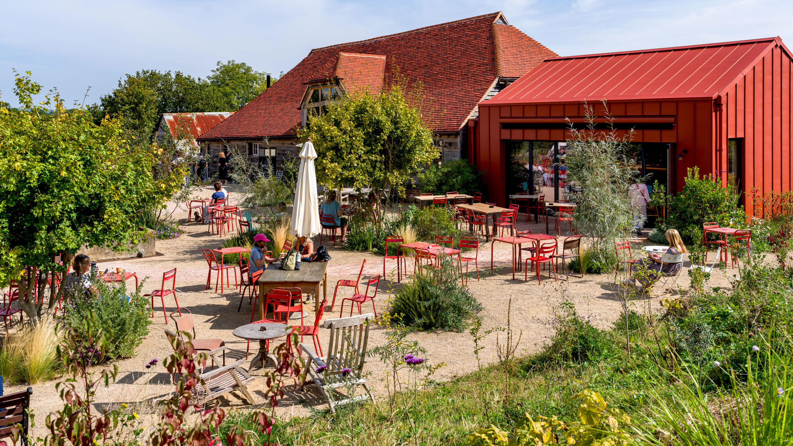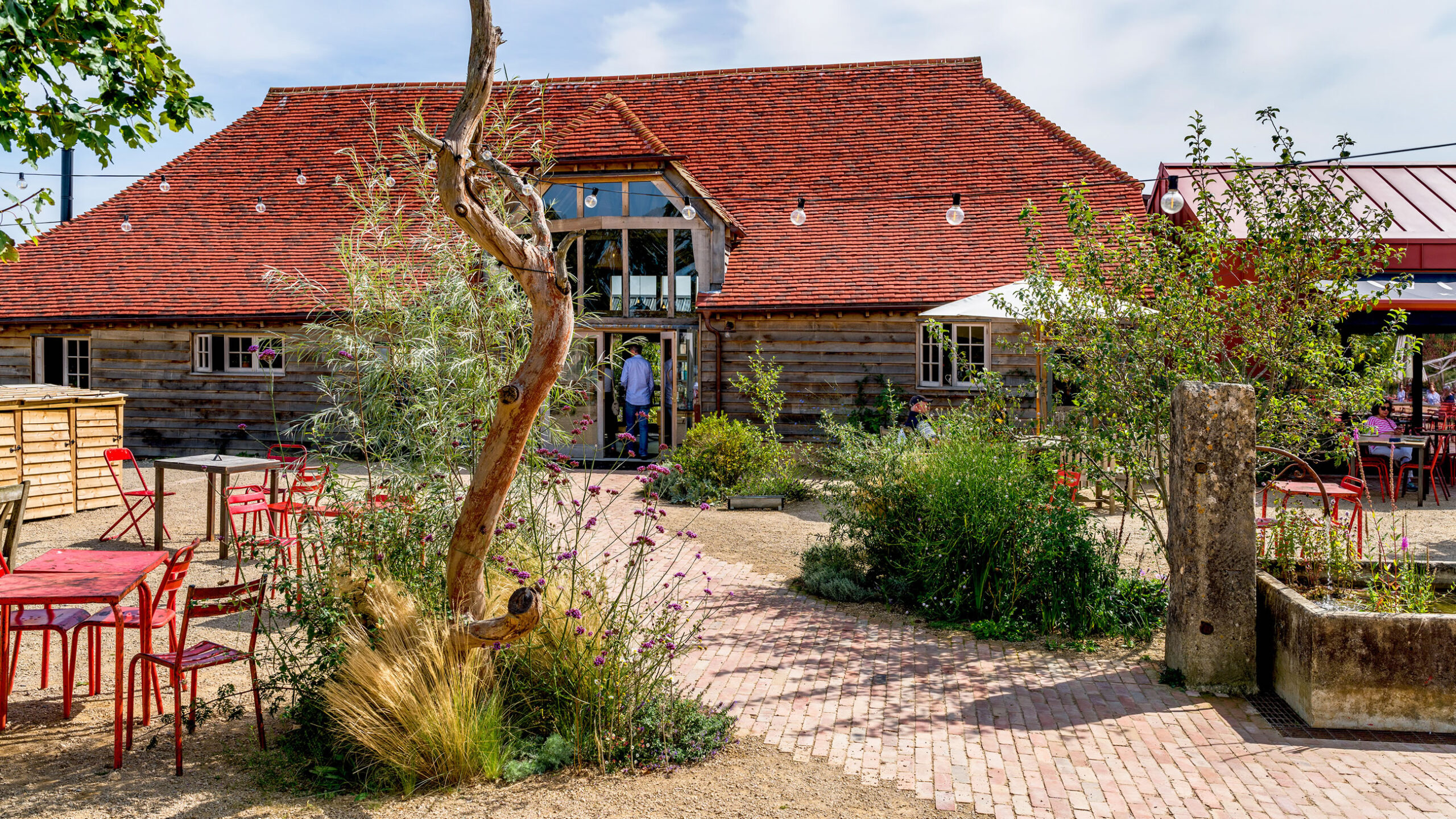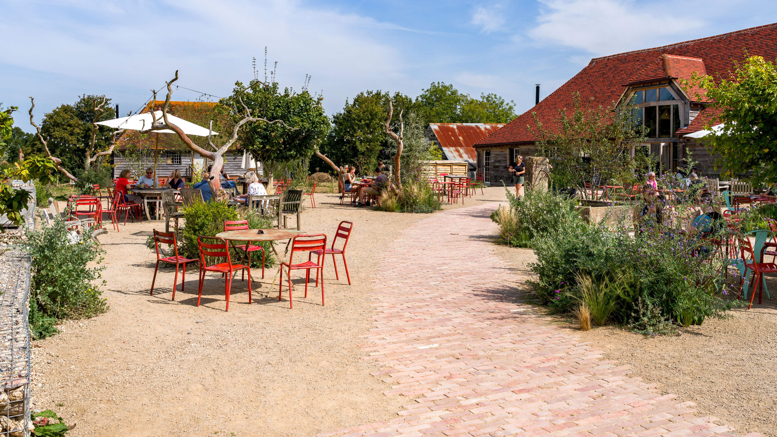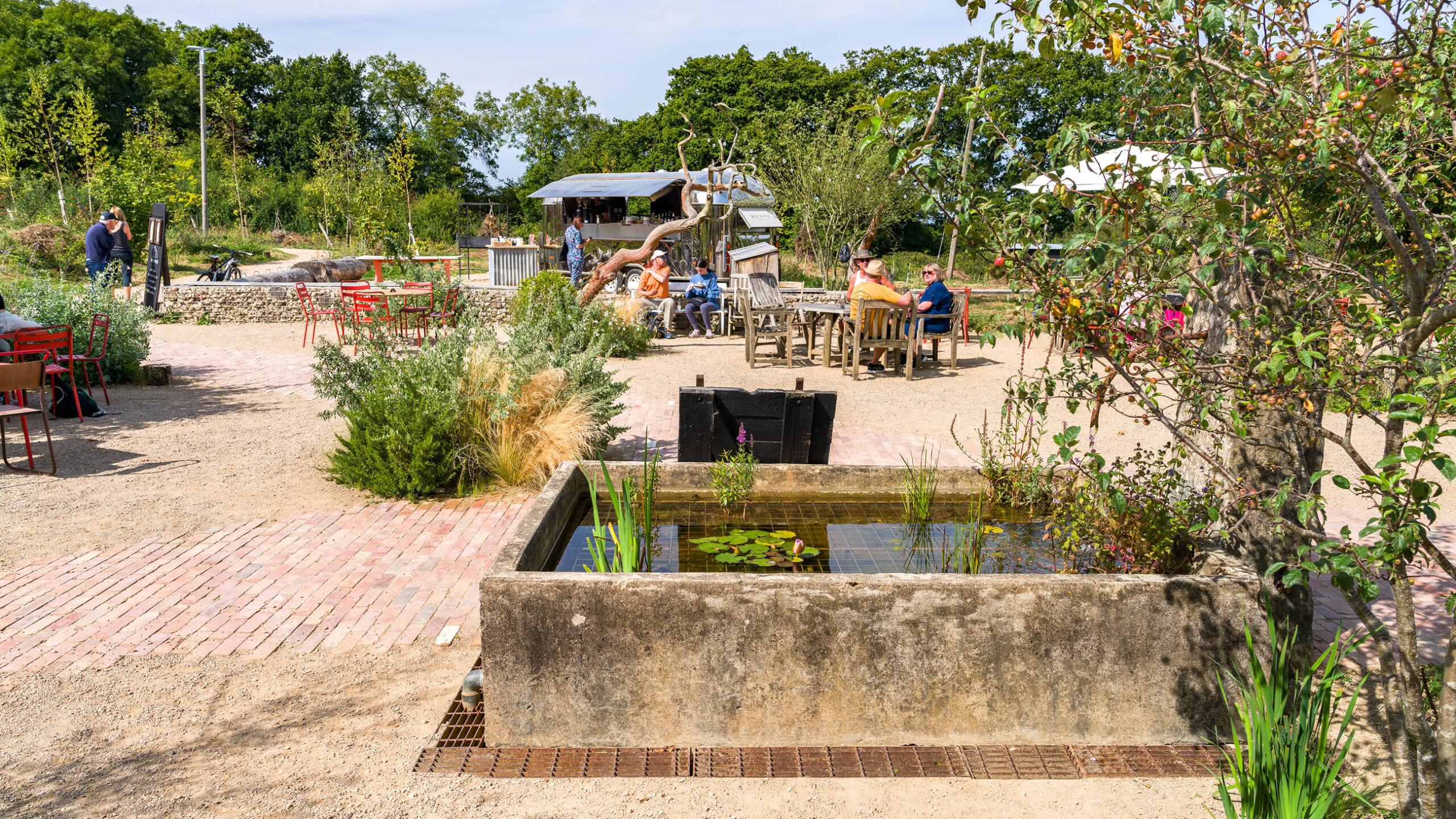 The project at Knepp Wilding was designed and managed by Tom Stuart Smith Studio in collaboration with ourselves (GL) and Knepp Estate, ensuring environmental performance was prioritized. We had regular meetings onsite and worked to high standards to get the work finished on time and to a quality finish. Graduate Landscapes also coordinated with other contractors working on the farm shop and café renovations, emphasizing teamwork to meet the tight schedule for opening. The project utilized sustainable practices such as reusing site materials and incorporating recycled elements, which in itself proved challenging at times.