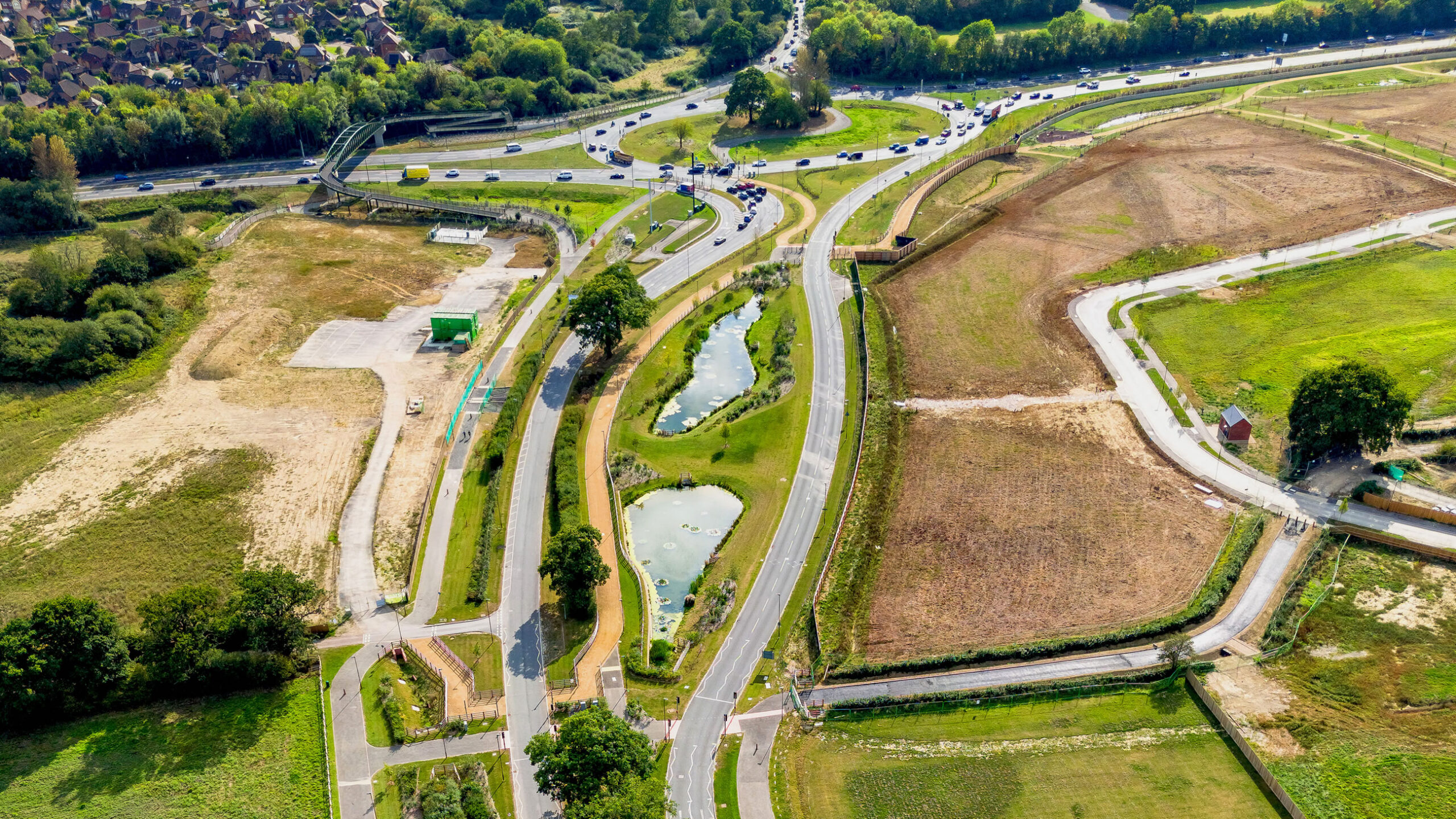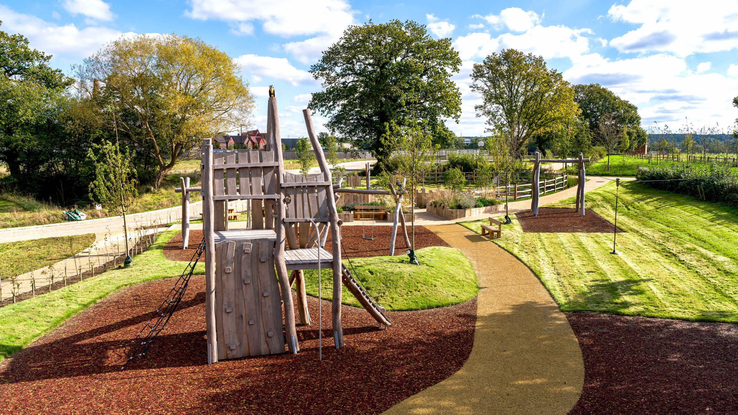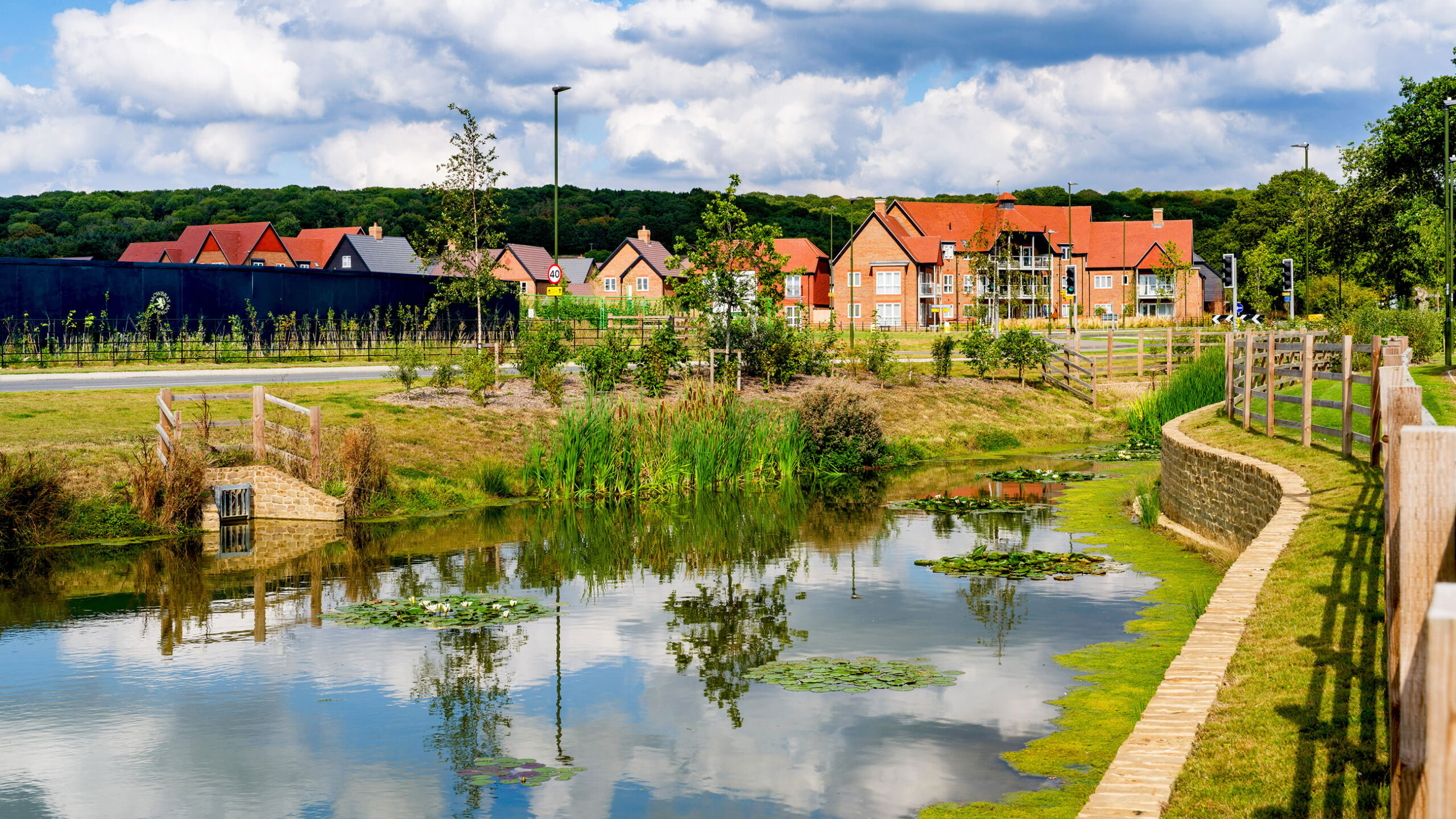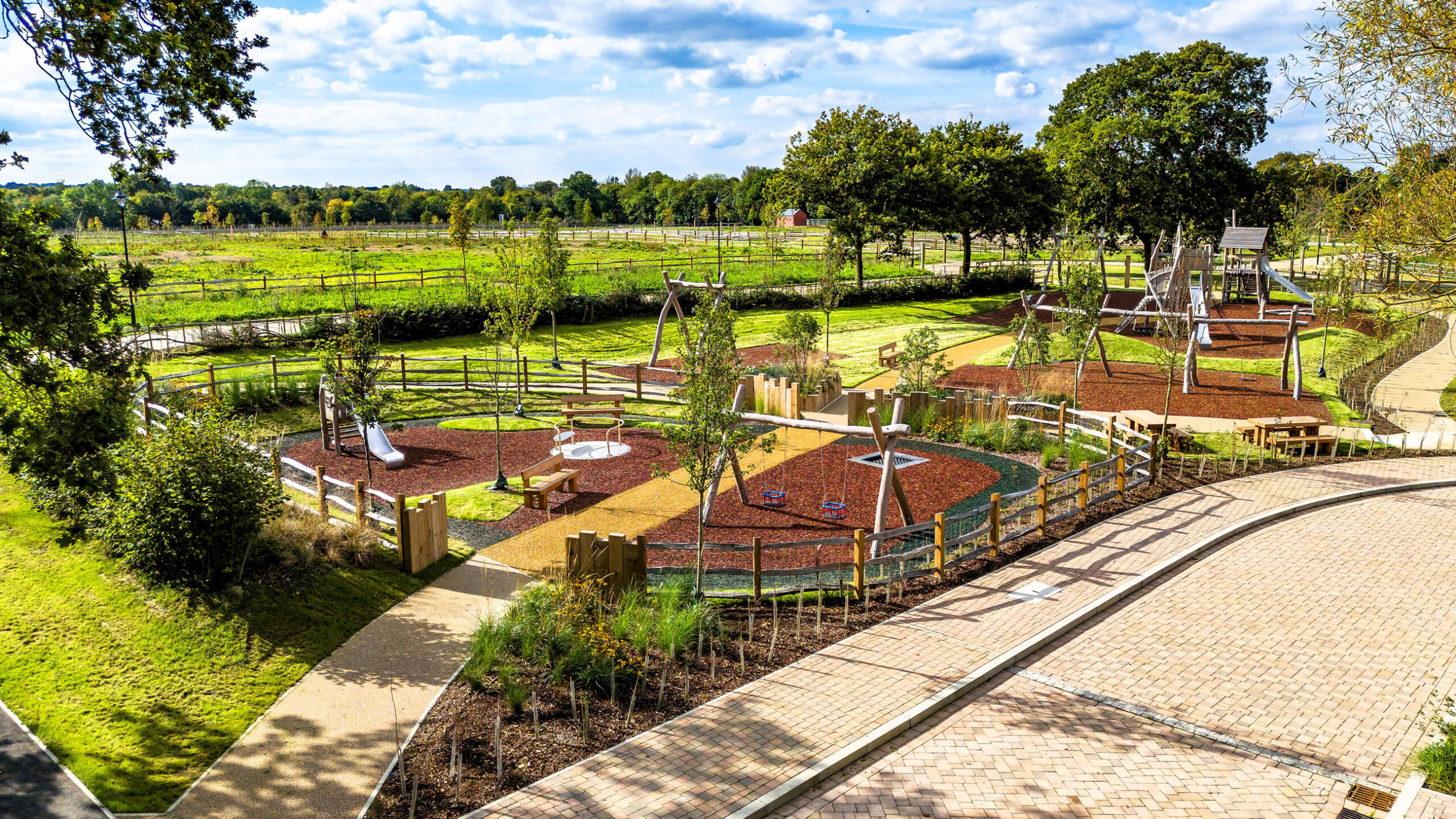 Graduate Landscapes was selected to deliver large-scale green infrastructure for Legal & General Strategic Land, enhancing the first phase of a long-term development. Our team successfully supplied and installed over 500 mature trees (20-25cmg), 100,000 native plants, and 200,000m² of wildflower meadows, alongside high-quality fencing and three bespoke play areas.