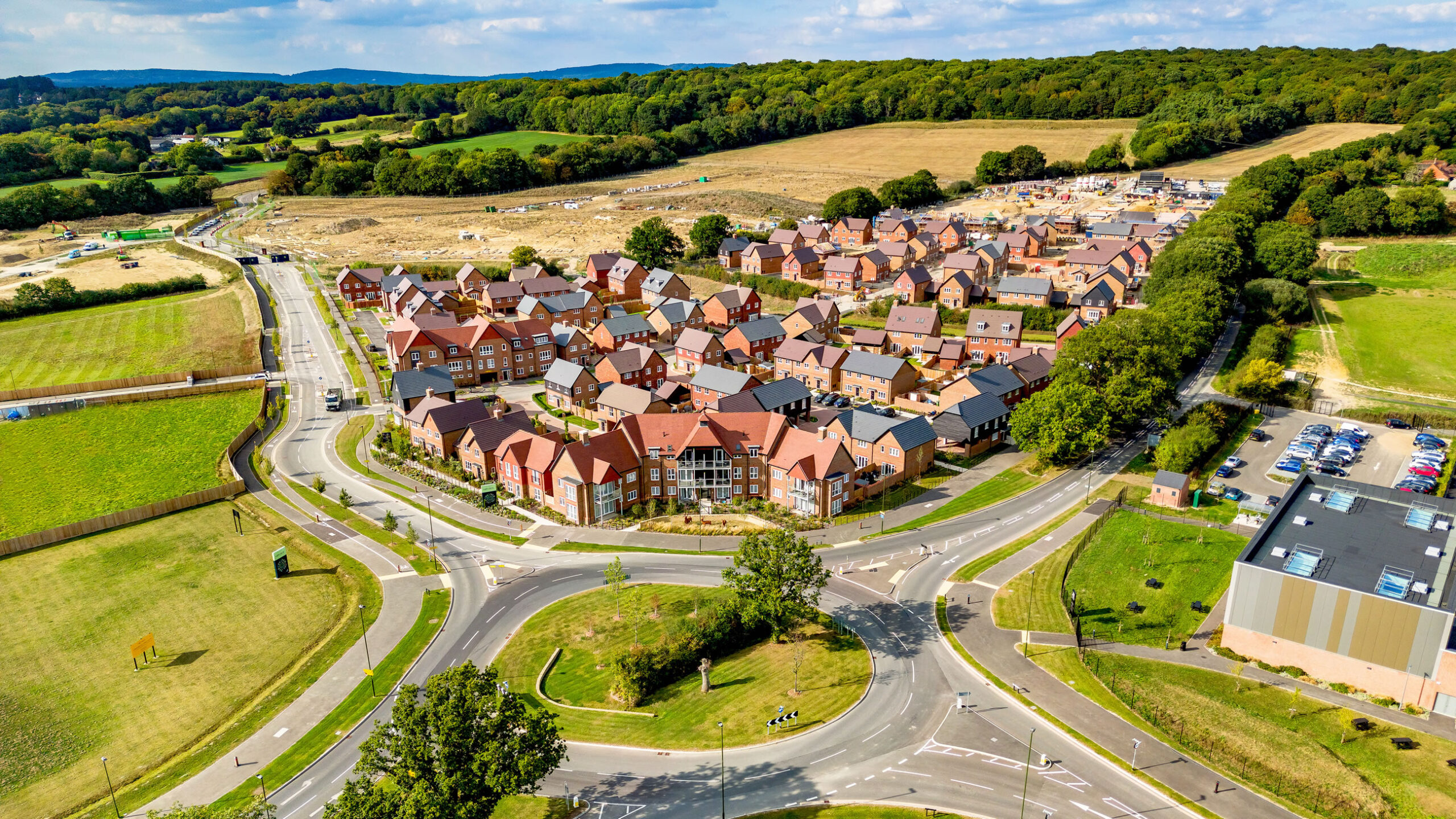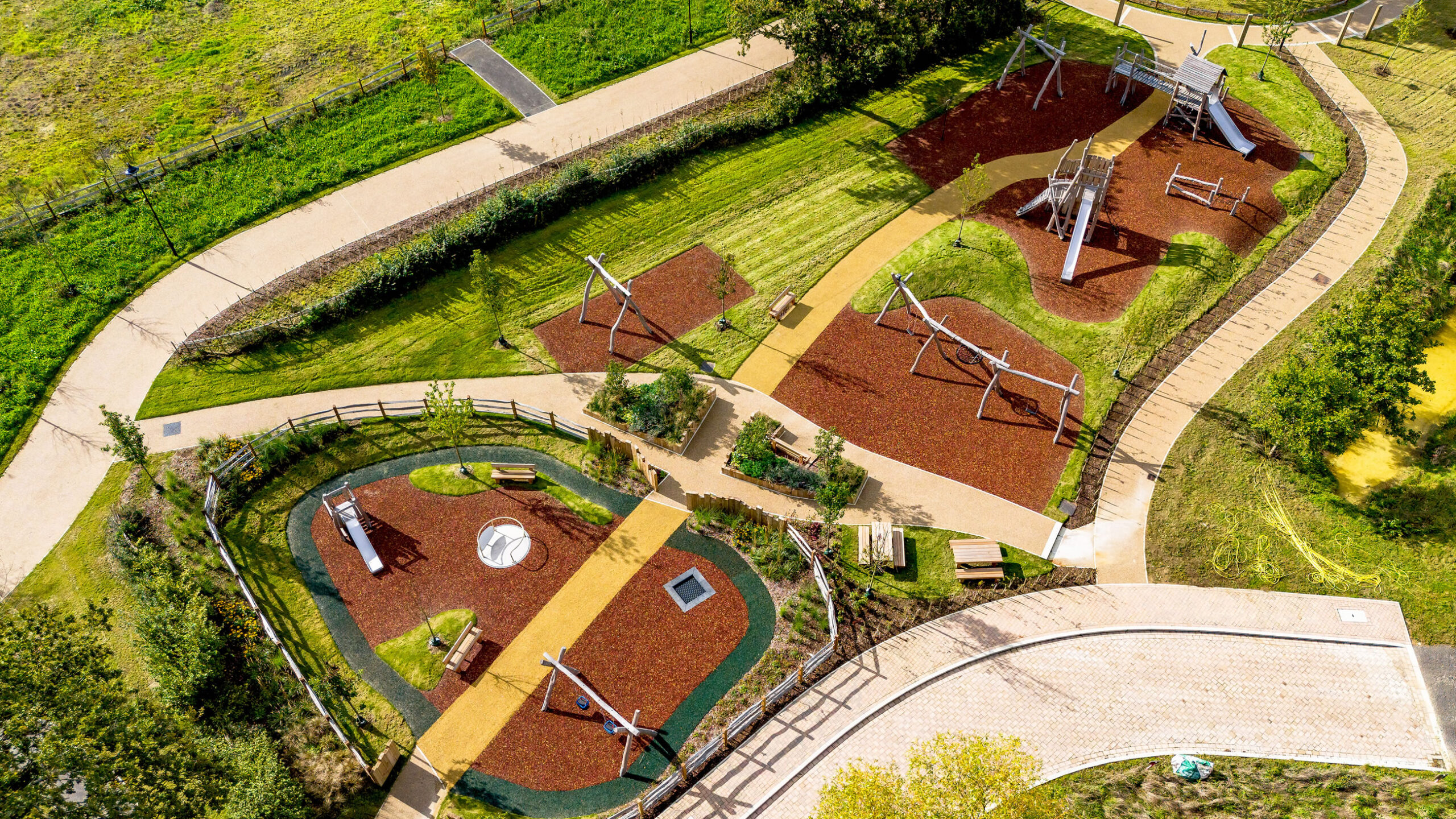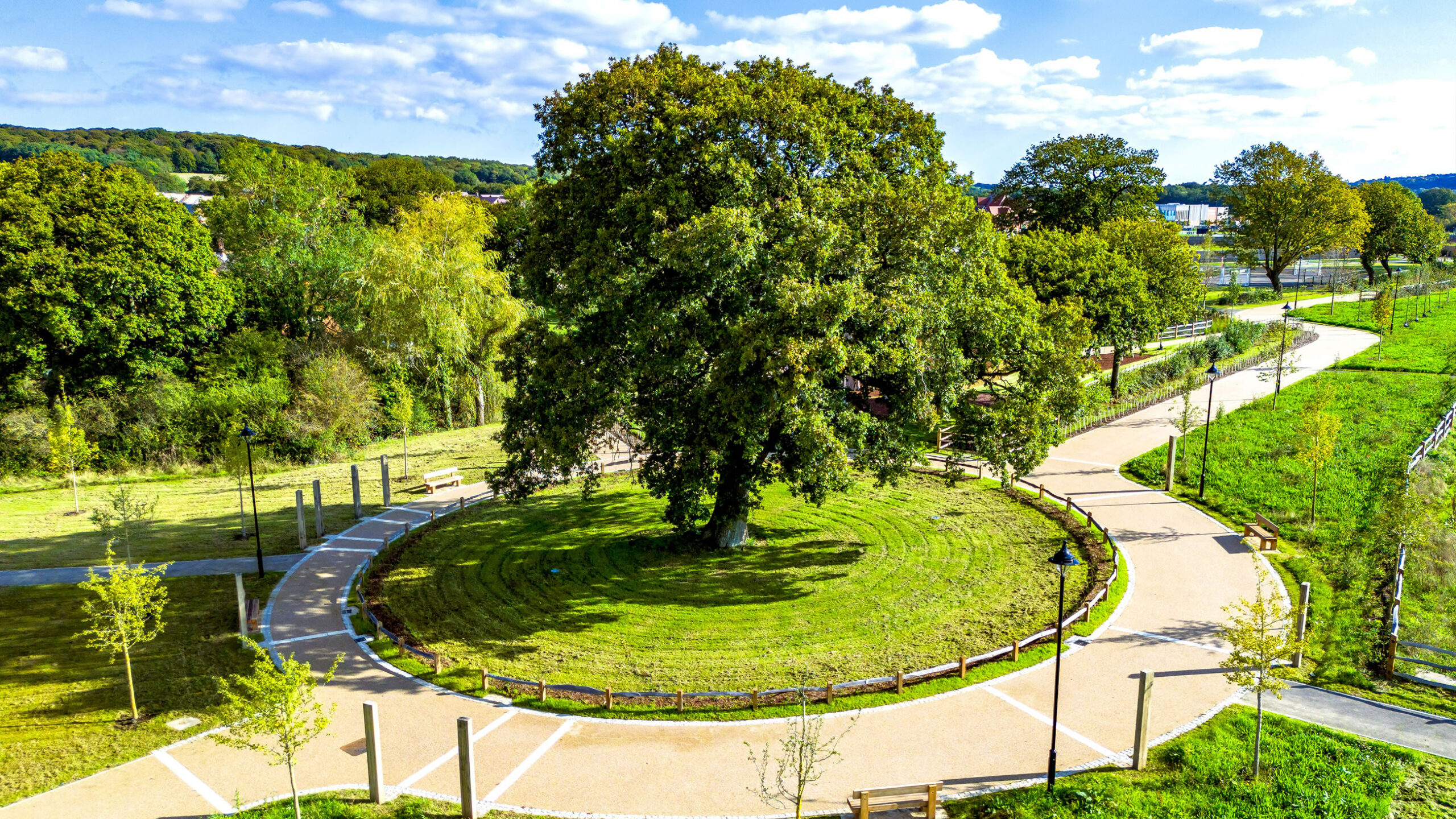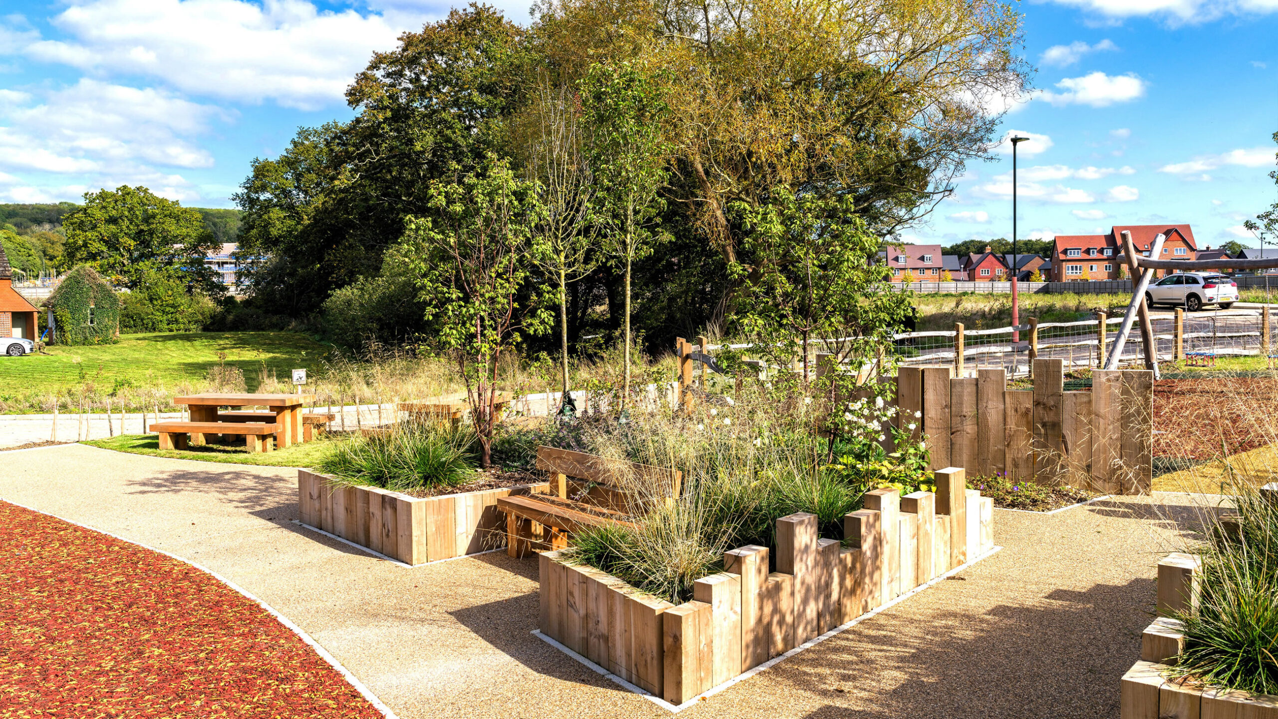 Graduate Landscapes was selected to deliver large-scale green infrastructure for Legal & General Strategic Land, enhancing the first phase of a long-term development. Our team successfully supplied and installed over 500 mature trees (20-25cmg), 100,000 native plants, and 200,000m² of wildflower meadows, alongside high-quality fencing and three bespoke play areas.